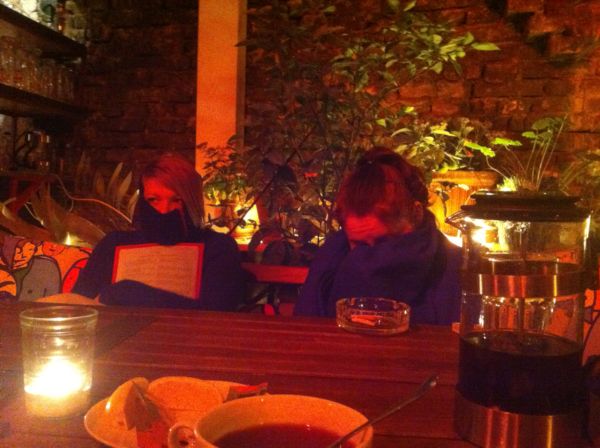 Legutóbb kisEszti javaslatára, – akinek, az el kéne menni valahova mondatra felcsillant a szeme, hogy tud egy tutit – mentünk el a Mostba. Eszter annak ellenére, hogy biztos volt, hogy egy ez nagyon jó hely, néha kétségeinek adva hangot, hogy biztos jó hely, már több mindenkinek tetszett. bíztunk benne. Tényleg jó hely! DE soha ne foglalj helyet a télikertben télen, mert az tulajdonképpen a nyári kerthelység fóliával leválasztva, hűsre való tekintettel felturbózva kültéri hősugárzókkal, ami ebben az időben, annyi, mint halottnak a csók. Megérkezvén annyira még nem is tűnt fel, hogy ez a hely, nem meleg, sőőőőőt! Bátran lekabátoltunk, elhelyezkedtünk és lelkes pletykázásba kezdtünk, amikor is feltűnt valami nagyon nincs rendben. Itt bizony hideg van. Eszterünk menteni próbálta a Most becsületét, hogy legutóbb sokkal hidegebb volt kint, és akkor sem fázott a társaságából senki, sőt egy barátnője szoknyában ücsörgött. A tényen, hogy most majd megfagyunk nem változtatott ez sem. Lassan mindannyiunk visszavette a kabátját, vagy egyszerűen csak a hátára terítettet. Fáztunk, továbbra is. Kriszta törökülésben ült a pamlagon, mert szerinte, ha a lába melegedik, Ő sem fázik annyira. A pincérek álltak a hősugárzó alatt, melegedtek két rendelés között:. –Olyan rohadt hideg van, menten szétfagyok! – mondták egymásnak. Ötleteltünk nagykabátban, hogy hogyan lehetne még melegebb, és arra jutottunk, hogy megkérjük pincéreinket keressék elő a nyári takarókat a pincéből. Eleinte viccnek vették, majd a harmadik kérlelés után, szempilla rebegtetéssel spékelve, előkerültek a plédek. A szomszéd asztalnál ülő két fiatalember emiatt és a belső melegítésre használt pálinka mennyiségtől vérszemet kapott és követelt magának takarót. Egész jó idő lett. Vacsoráztunk beszélgettünk és sajnáltuk a pincéreket, akik fáztak, hogy jobb kedvük legyen és fűtse őket valami melegítették a bensőt valami erőssel, ettől édesen csillogott a szemük. Vacsora után feltűnt az is, hogyan lett a nyári kertből téli kert illetve, hogy a bádogembernek van szíve csak kővé fagyott! Néhány növény utalt arra, hogy ez egy kert, látszott az is, hogy sokkal jobban éreznék magukat a pálmaházban, de nekik ez jutott tűrik a hideget. A növények között ácsorgott díszletként a szegény bádogember, akinek valószínűleg volt szíve, csak melege nem, így hát nem tudott mit tenni ácsorgás közben megfagyott. A szomszéd asztalnál ülő fiatalemberek úgy gondolták megpróbálkoznak helyet találni, a meleg étteremben, ami tömve volt, péntek este révén, de két hely csak akad még bármely asztalnál, így megleptek minket plusz két takaróval. mi pedig a lelkükre kötöttük, hogy ha üresedne valahol négy hely, gondoljanak ránk és megyünk. Tündérkirályfiak márpedig léteznek, ugyanis alig fél óra elteltével jött a követ, hogy mehetünk, van hely a melegben. Mentünk, bár kérleltek minket pincéreink, hogy maradjunk, mert milyen üres lesz nélkülünk a téli kert, de kérlelhetetlenek voltunk. Mielőtt elhagytuk volna a téli kertet egy meleg, füstös helyért gondosan betakargattam két pléddel a bádogembert a virágok között.