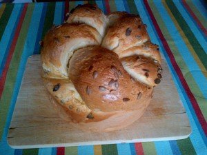 Régen hosszú percekig dagasztottam kézzel, de ma már úri asszony módján kenyérsütő gép dagasztó programján az összes hozzávalóval megdagasztom, megkelesztem, majd megfonom, jól kikent lábasban duplájára kelesztem, sütés előtt lazán felvert tojással megkenem és 180 fokon negyven perc alatt megsütöm. Amikor kiveszem a sütőből konyharuhával letakarom és a lábasban hagyom kihűlni.